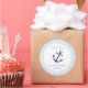 Round sticker for baby shower favour with nautical theme.