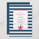 Set the tone for an unforgettable Bachelorette party weekend getaway with these cute navy blue and white nautical stripe with red starfish invitations.