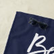 Nautical beach towel with white script text Beach Bride and anchor graphics printed on navy blue background