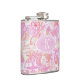 This cool hip flask features a fun summer pattern of nautical elements including anchor, seagull, starfish and many more, all in hot pink with swirls and wavy gold and peach accents. Add your name and/or monogram using the provided template. Search ID839 and ID840 to see other products with this design and additional colour options.