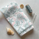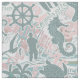 A fun summer collage of nautical elements and text including anchor, seagull, starfish and many more, all in soft sage green with swirls and wave accents in powder blue and peach pink. Create beach house or patio decor, beachwear or boating attire with this eye-catching new pattern. Search ID840 to see other products with this design and additional colour options.