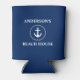 Nautical Beach House Family Name Anchor Blue Can Cooler