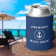 Nautical Beach House Family Name Anchor Can Cooler Navy Blue