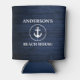 Nautical Beach House Family Name Anchor Blue Wood Can Cooler