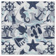 A fun summer pattern of nautical elements including anchor, seagull, starfish and many more, all in navy blue with swirls and wave aqua blue accents. Create beach house or patio decor, beachwear or boating attire with this eye-catching new pattern. Search ID839 to see other products with this design and additional colour options.