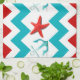 Nautical Beach Red Teal Chevron Anchors Starfish Tea Towel