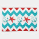 Nautical Beach Red Teal Chevron Anchors Starfish with red and turquoise chevron stripes with teal turquoise blue anchors and bright red starfish centred in the middle of the chevron pattern.