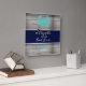 Nautical Beach Rustic Wood Family Monogram Name Square Wall Clock is designed with a rustic faux wood background and a nautical teal crab. The beach phrase is "welcome to our beach house" in trendy handwritten lettering on the centre of navy blue horizontal stripe. It is also customised with your family name and year established across the lower area. Click personalise template option and follow the prompts.