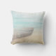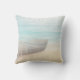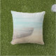 A pillow with a beautiful rustic image. Subtle colours of light blue, sandy brown and gentle white. A beach scene with a boat on the shore with a fishing net hanging off the side. An elegant shabby look.