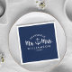The perfect cocktail napkin to compliment your nautical themed wedding. Design features a white anchor set against a navy blue background and the words "the wedding of Mr. & Mrs." . . . add your new last name and date of wedding below. Simple and classic - the perfect touch for your seaside, sailing, boating or yacht club wedding. Also available in luncheon and dinner sized napkins.