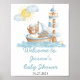 Nautical Bear Watercolor Boat Baby Shower Welcome Poster