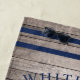 The nautical beach towel features a coastal-style boat anchor and stripes design. Personalise the custom text with a family last name + family (or another title) with the year established and location.