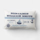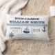 This birth commemoration pillow feature a cute sail boat, anchor, rope and helm. The design also includes a light blue sash and a few dividing lines. The back of the pillow features a striped light blue and white pattern and an anchor. The pillow is ready to be personalised and is ideal as a nursery birth commemoration pillow and is particularly suitable for a nautical theme room.