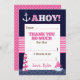 This adorable fill-in-the-blank thank you note matches our popular Sail Away Girl's Nautical Birthday party invitation. This thank you note can be personalised with your child's name at the bottom (or it can be left blank), and the blanks can be filled-in by hand. This is a cute way for a young child to say Thank You to party guests!
