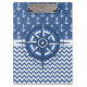 Nautical Blue and White Anchor and Chevron Pattern Clipboard