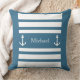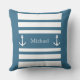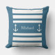 Nautical Blue And White Stripes Anchor Name Cushion