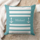 Nautical Blue And White Stripes Anchor Name Throw Pillow. You can personalise by writing text (name, family name, monogram...).