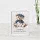 This cute folded note card features an adorable baby bear dressed in a nautical blue jacket and cap. Personalise the front with your choice of name and special text.