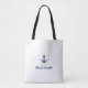 Nautical Blue Gold Anchor Boat Name White Tote Bag