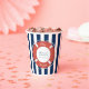 A simple navy blue and white striped pattern with personalised text. An ideal nautical theme design for a baby boy shower paper cup. Customise the text and make it your own. View matching items in this collection.