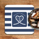 Nautical Blue Striped Heart Anchor Wedding Square Paper Coaster