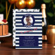 Make a splash with this personalised birthday invitation! It boasts a sophisticated navy blue and white horizontal striped pattern, providing a clean and elegant backdrop for your special event. The design includes a circular space for a cherished photo, making it a truly unique and personal keepsake. The colour scheme is classic and timeless, perfectly suited for a birthday celebration of any age. Include all your party details, ensuring all your guests have all the information they need. Order today and make your party unforgettable! This design is perfect for a nautical themed party or any sophisticated birthday gathering.