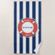 Nautical Blue Striped Welcome Aboard Boat Name Beach Towel