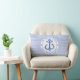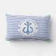 NewparkLane - Nautical Lumbar Pillow, with a blue and white striped pattern and an anchor in a circular white frame. Add your family name or other personal text in the frame around the anchor.