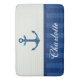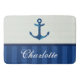 Nautical Blue Stripes Pattern Anchor Custom Name Bath Mat