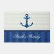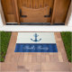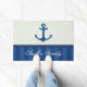 Nautical Blue Stripes Pattern Anchor Custom Name Doormat