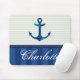 Nautical Blue Stripes Pattern Anchor Custom Name Mouse Pad