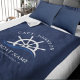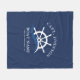 Nautical blue and white fleece blanket with a ship helm and ocean waves. Great decoration for a yacht owner or any sailor. Personalise it by adding your name, your boat name and the city you set sail in.