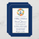 Nautical Wedding Blue Anchor Tropical Floral Gold Invitation - Ticket Style - Blue Text - Blue Back