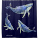 Nautical Blue Whale Watercolor White Wood Name Shower Curtain