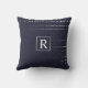Nautical Blue White Abstract Monograms Rustic Cushion