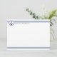 Handsome and smart nautical themed, personalized correspondence office note cards featuring your family name, company, event or other desired text. This 2 sided unique design features a boat anchor in a diamond circle emblem with stylish gradient lines, resembling the sea. The design is in classic navy blue and white.