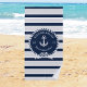 Nautical Boat Name Anchor Grey Navy Blue Welcome Beach Towel