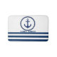 Nautical Boat Name,Anchor Navy Blue Striped Bath Mat