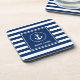 Nautical Boat Name Anchor Navy Blue Striped Coaster