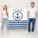 Nautical Boat Name,Anchor Navy Blue Striped Fleece Blanket