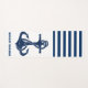 This image features a boat name, and anchor on a navy blue and white striped background.