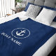 Nautical Boat Name Anchor Rope Navy Blue Medium Fleece Blanket