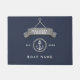 Welcome aboard personalised boat name dark navy blue nautical anchor and rope boating themed doormat.