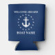 Nautical Boat Name Anchor Stars Navy Blue Welcome Aboard Can Cooler