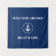 Nautical Boat Name Anchor Rope Welcome Aboard Navy Blue Wall Tapestry Square