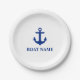 Nautical Boat Name Anchor Blue and White Party Paper Plates