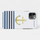 Nautical Boat Name, Gold Anchor Navy Blue Striped Case-Mate iPhone Case