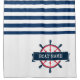 Nautical Boat Wheel, Navy Blue Striped Shower Curtain