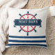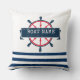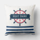 Nautical Boat Wheel, Navy Blue Stripes Cushion