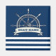 Nautical Boat Wheel, Navy Blue Stripes Magnet